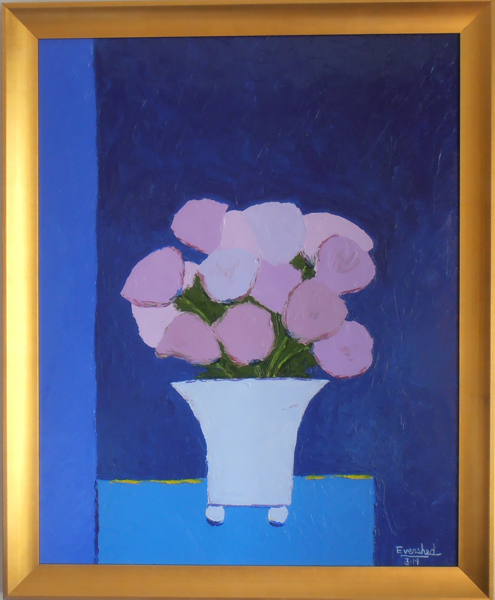 Pink Flowers In Blue Room 24″x30″ (SOLD)