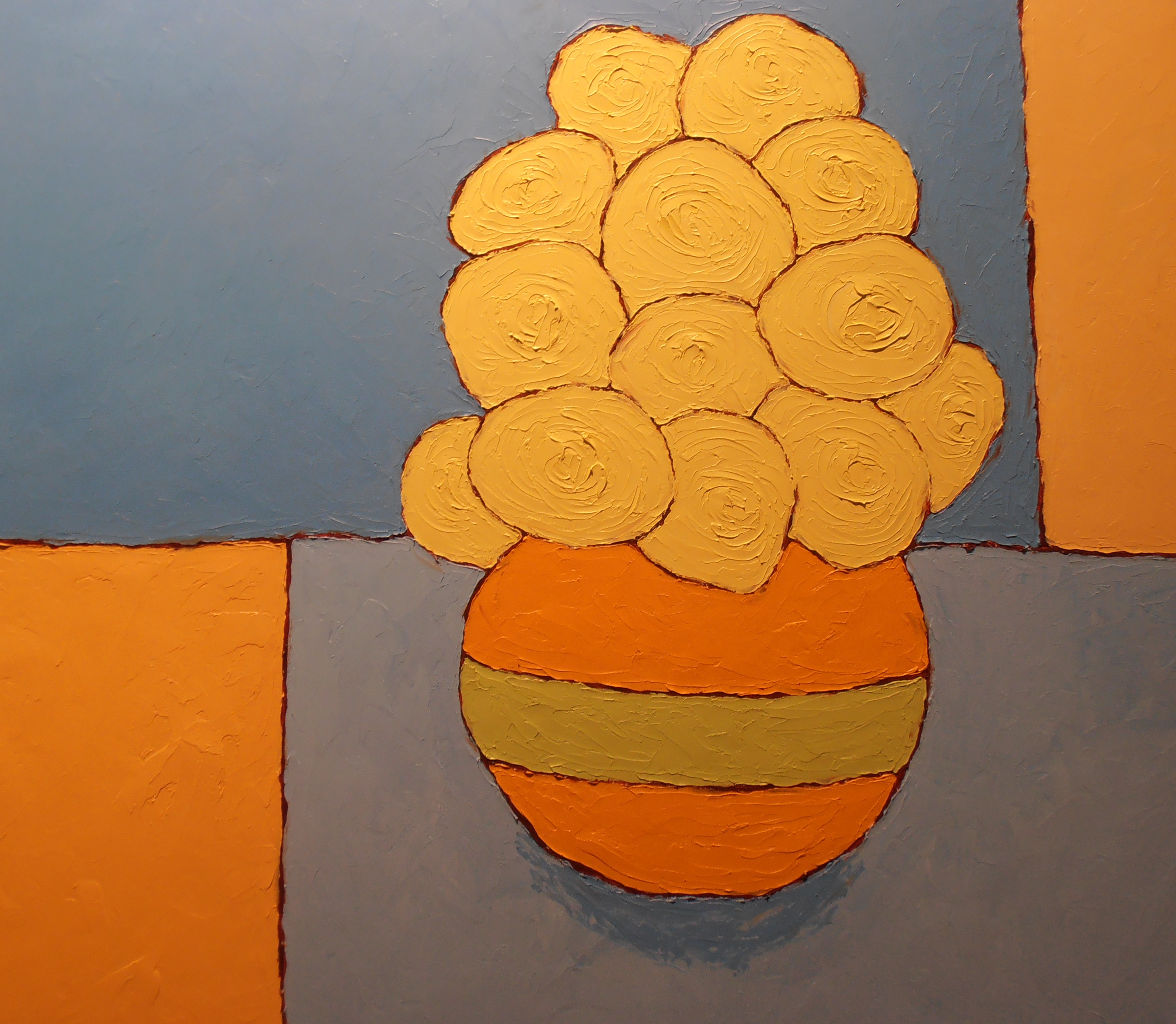 Flowers In Striped Vase 24″x30″ Oil On Board