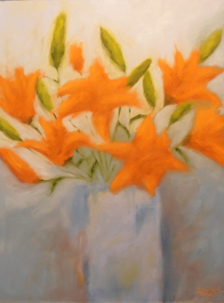 « Orange Lilies 2 ~ 18×24 ~ Oil On Board ~ $250 unframed