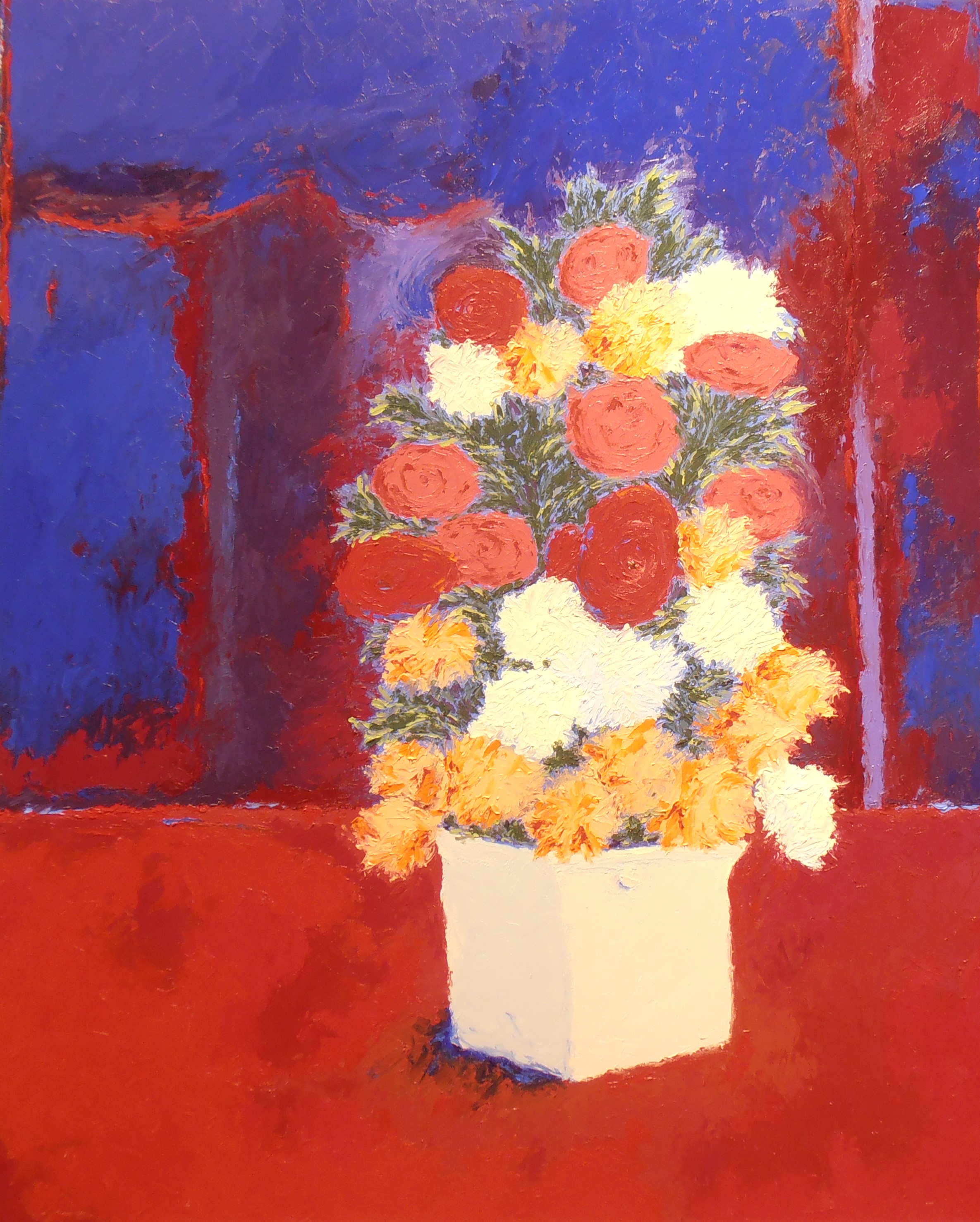 Bright Red Flowers ~ 24×30 ~ Oil On Board ~ $225 unframed