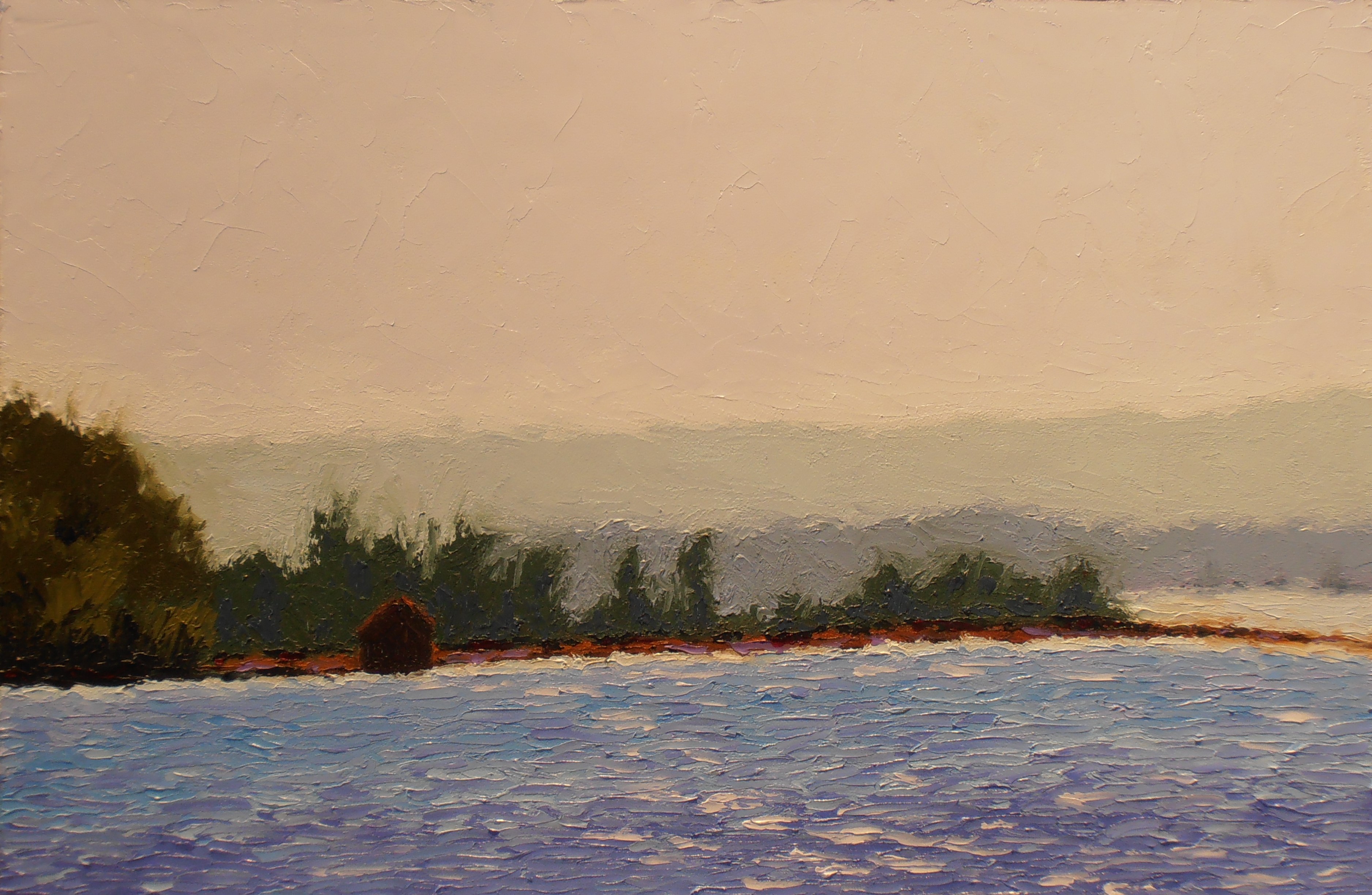« Boat Shed and Dinghy ~ 18×24 ~ Oil On Board ~ $400 unframed