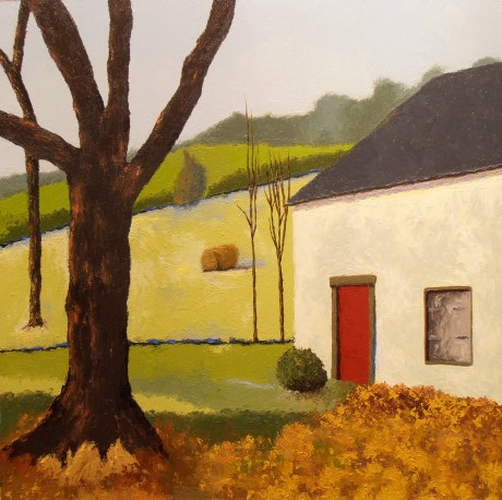 Cottage with Red Door ~ 24×24 ~ Oil On Board ~ $250 unframed