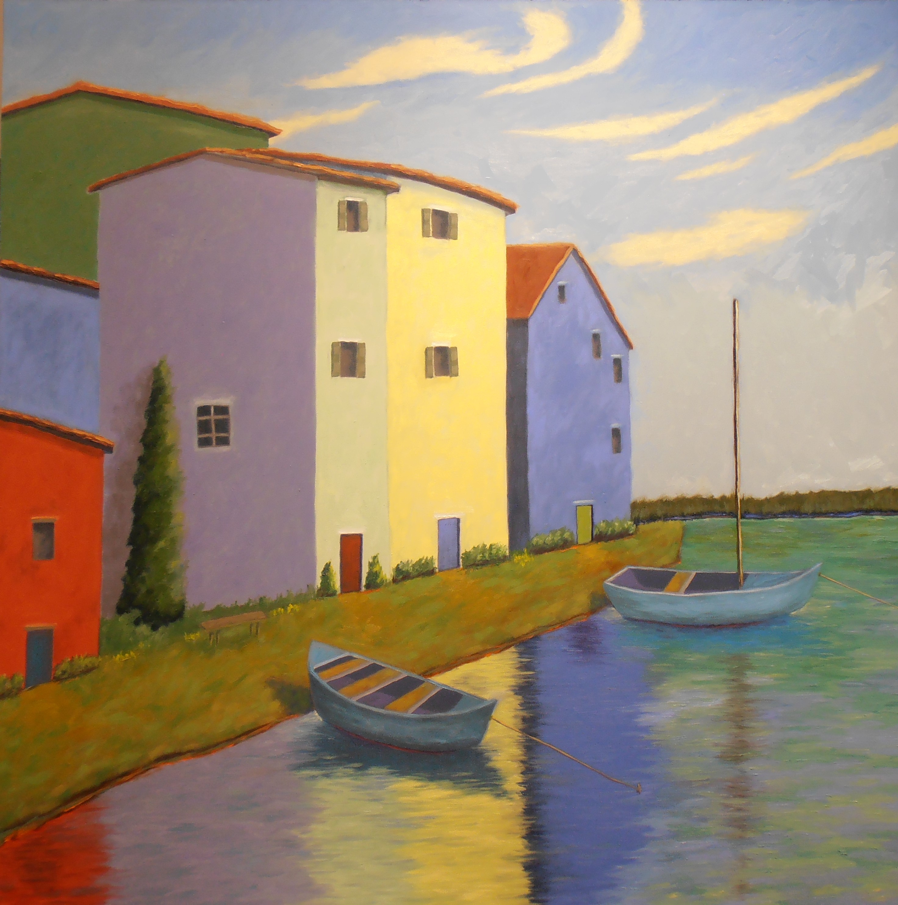 Seaside Village ~ 36×36 ~ Oil on Panel ~ SOLD