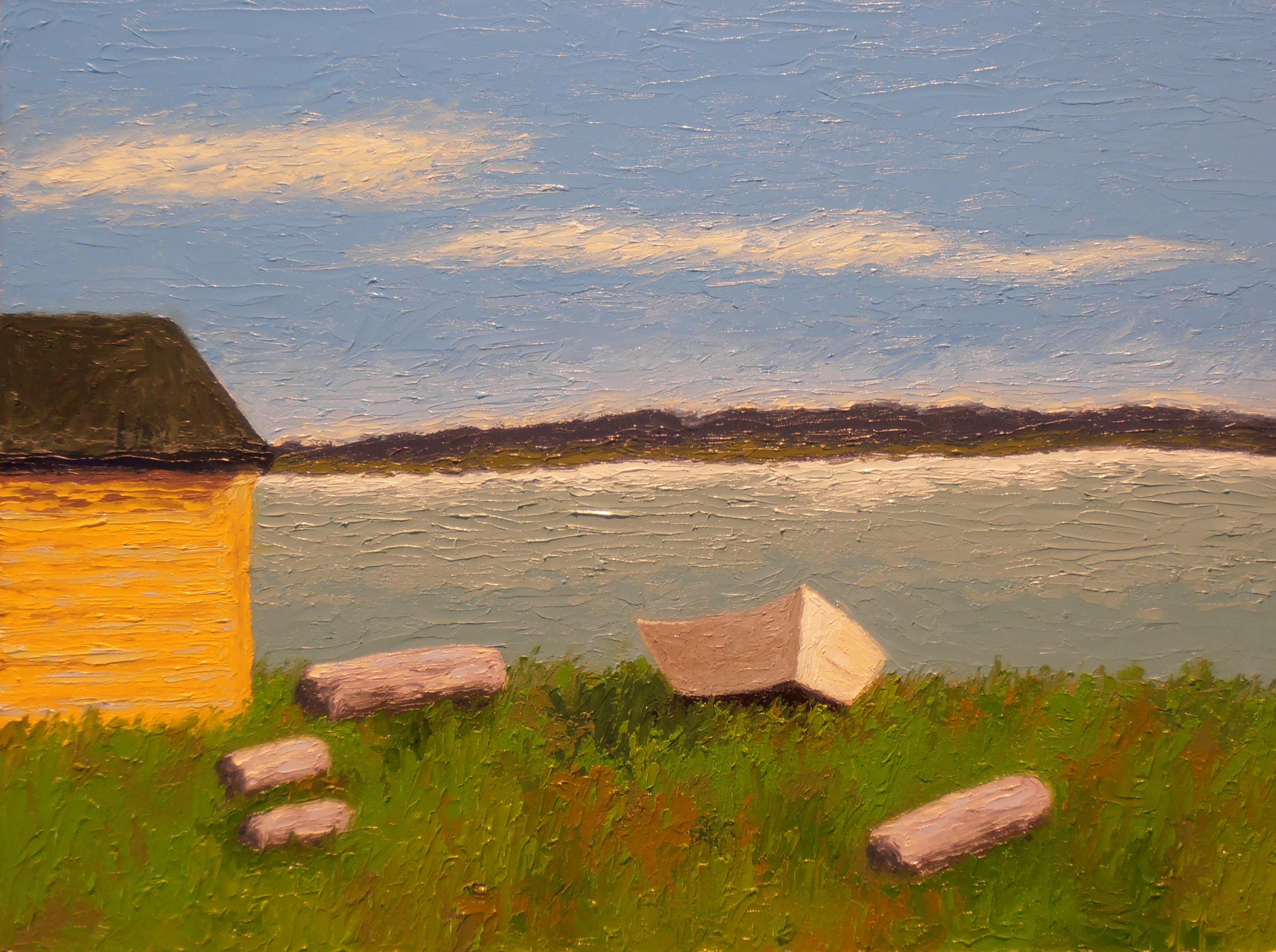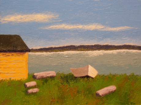 Yellow Shed and Boat ~ 12×16 ~ Oil On Panel ~ $350 framed